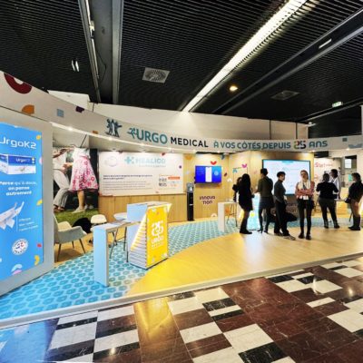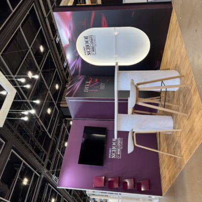 A l’occasion des Pro Days un stand fabriqué par notre équipe avec entre autres une stèle à facettes pour mettre en avant leur dernier vélo cargo.